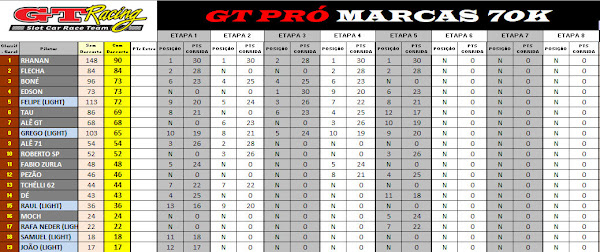 Classificação (quarta-feira) GT PRÓ MARCAS 70K 22